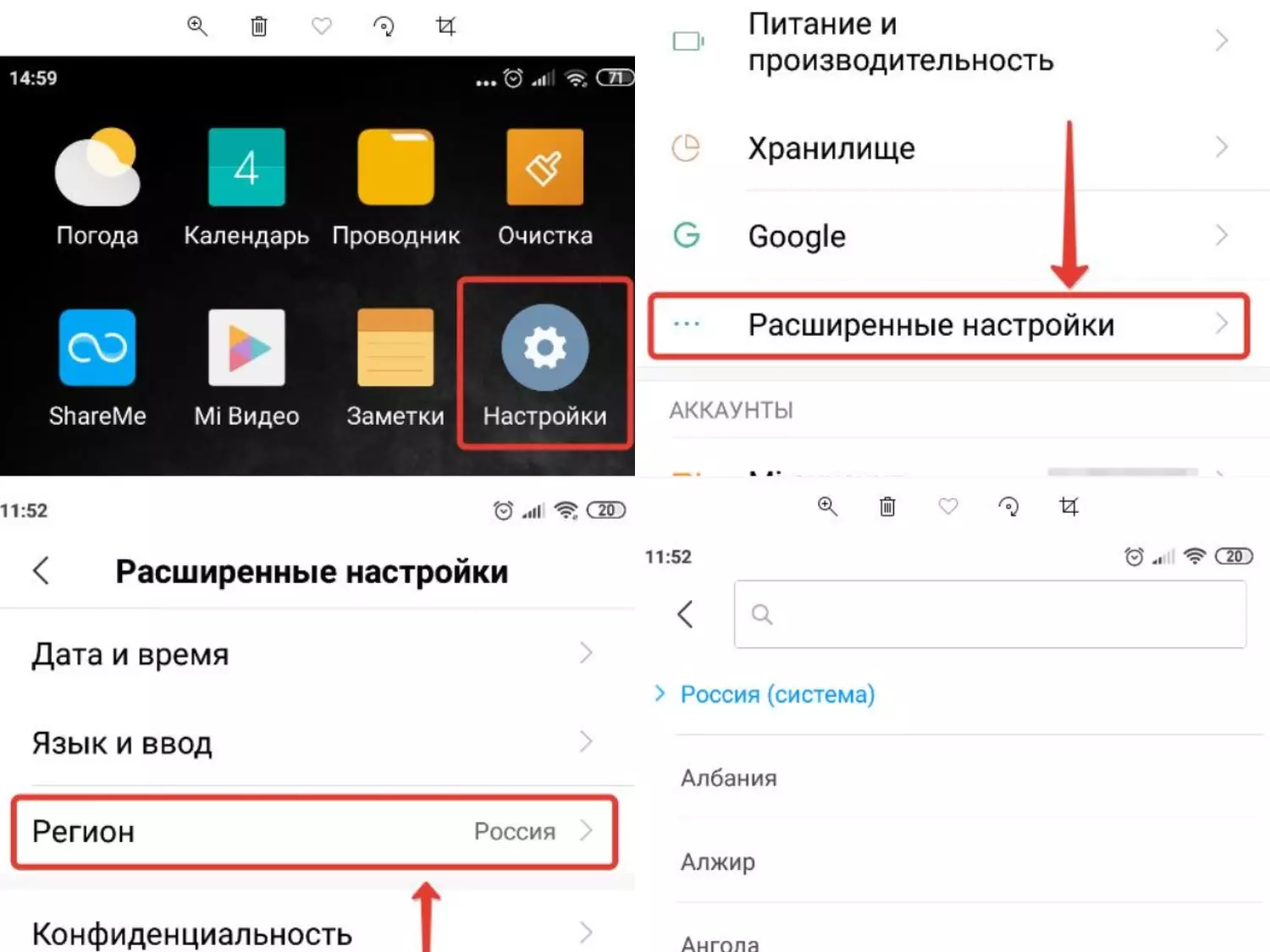Инструкция по смене региона на Андроид такая: